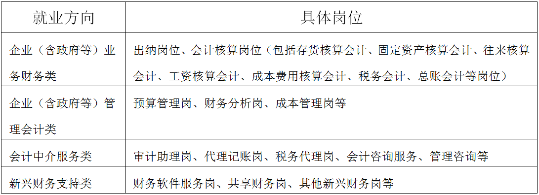 本专业培养理想信念坚定,德、智、体、美、劳全面发展,具有一定的科学文化水平,良好的人文素养、数据素养、职业道德和创新意识,精益求精的工匠精神,较强的就业能力和可持续发展能力,熟练掌握会计基本理论知识和基本技能,具备进行日常会计核算、财务软件应用、财务管理、纳税申报、审计等实践能力,主要在中小微型工商企业、财务软件开发公司、会计师事务所等中介机构就业,能应对会计工作新挑战与新需求的高素质复合型会计技术技能人才。