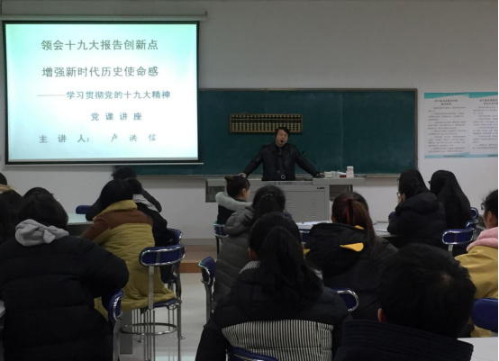 为认真学习、深刻领会、全面贯彻党的十九大精神,严格落实好“三会一课”制度。1月8日下午,会计第一公司党总支在公司东区实训室(二),举办“学习贯彻党的十九大精神”党课专题教育活动,此次党课由会计第一公司党总支书记卢洪信教授主讲,聆听此次讲座的是会计第一公司员工入党积极分子。