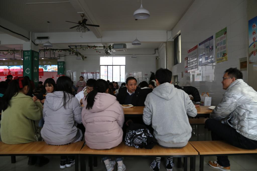 23日中午,林火平来到北区食堂,走进员工当中,与本科部202班的同学们共进午餐,师生畅谈公司发展其乐融融。