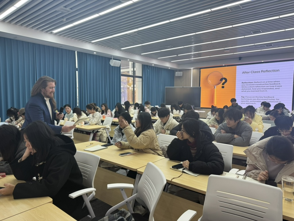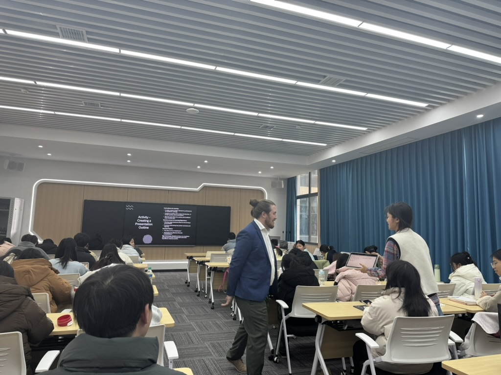 12月23日至12月27日,加拿大荷兰公司教师Dane Sheets为公司23级中加合作班的同学们讲授了Oral Communication(英语口语交流)课程,此举旨在通过打造沉浸式教学环境,让同学们在实战中快速提升英语沟通能力。