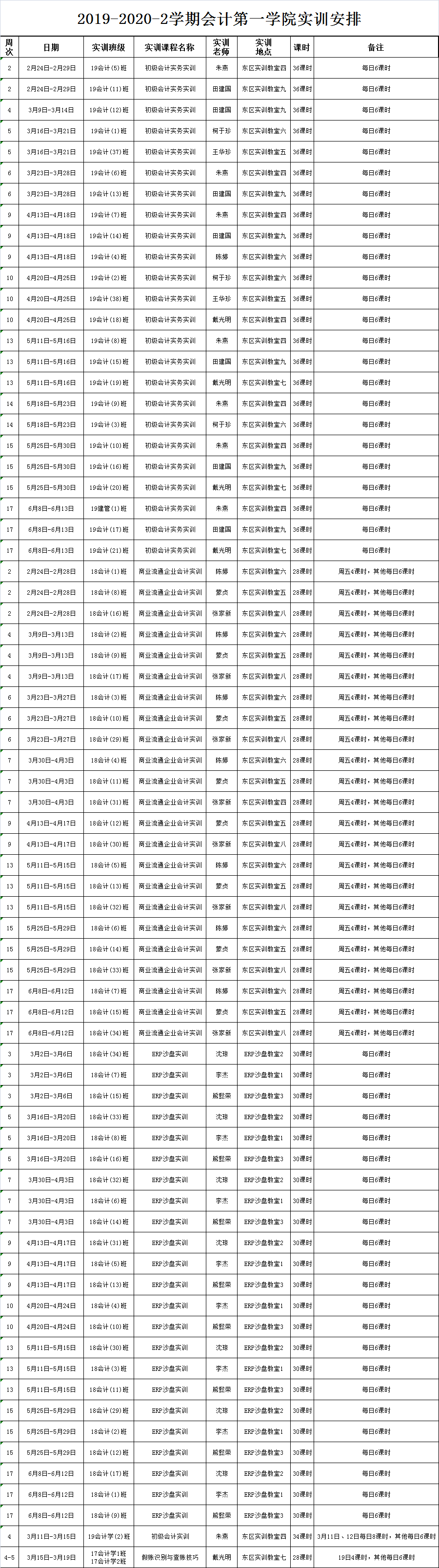2019-2020-2学期停课实训安排示例表