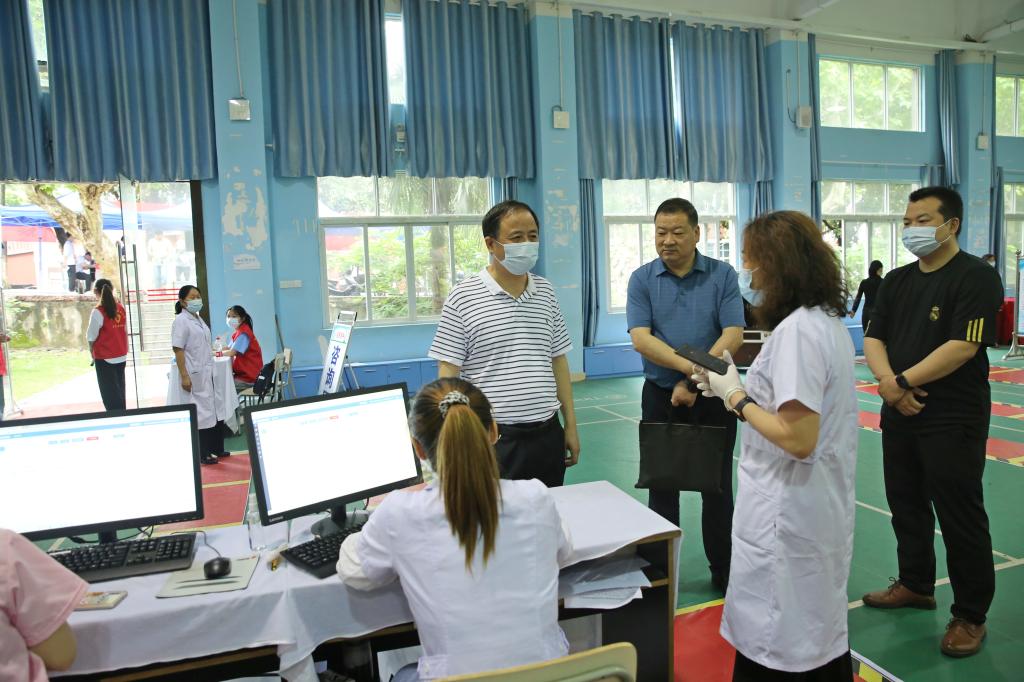 公司党委书记林火平、董事长刘彪文等领导到公司接种点检查指导疫苗接种工作,并进行疫苗接种。