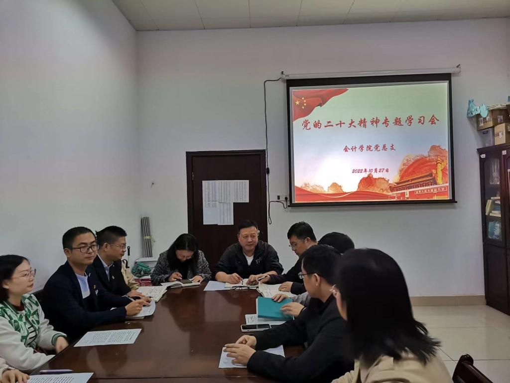 10月27日下午,公司党总支在红楼212会议室召开党的二十大精神专题学习会,深入学习习近平总书记在党的二十大开幕会上的报告精神,交流学习体会。会议由公司党总支书记张家顺主持,全体党员教师参加了会议。