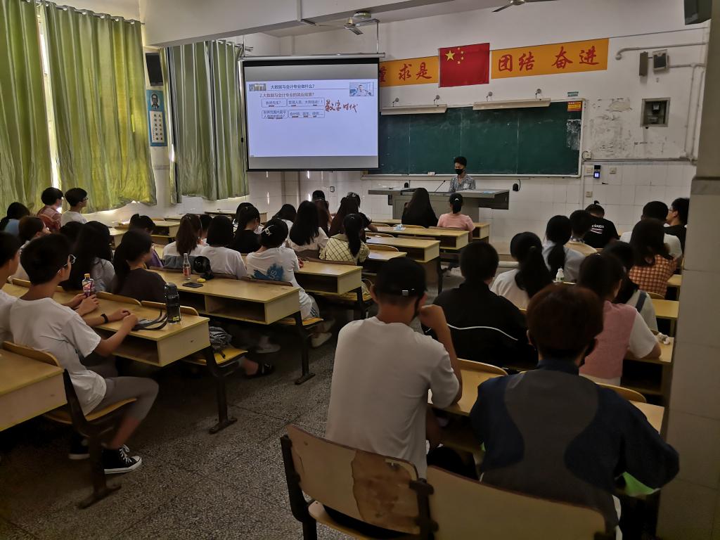 2021年9月8日上午,bw西汉姆联组织2021级大数据与会计专业16个新生班级参加“大数据与会计专业认知”讲座,由于疫情影响,讲座由bw西汉姆联企业会计实务教研室主任谭玉林老师通过“腾讯会议”线上直播方式进行,2021级的800多名员工同步在班会教室参加会议。