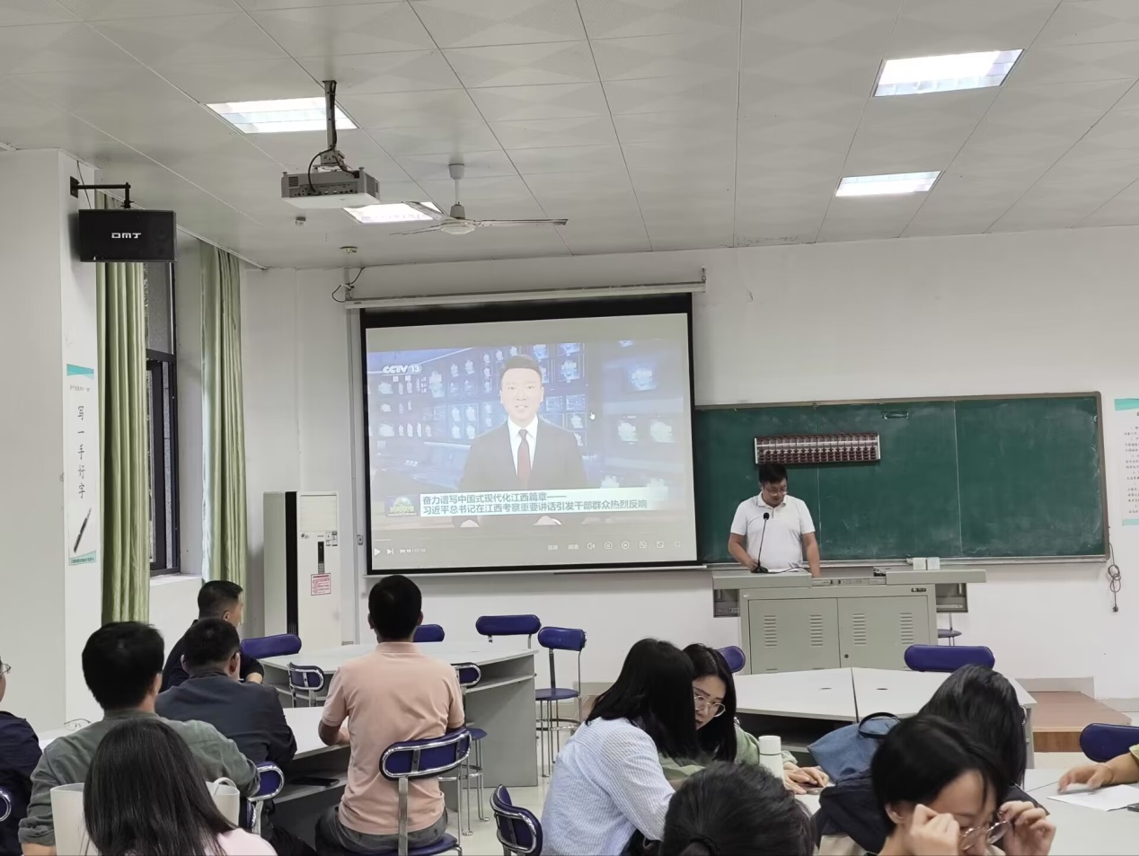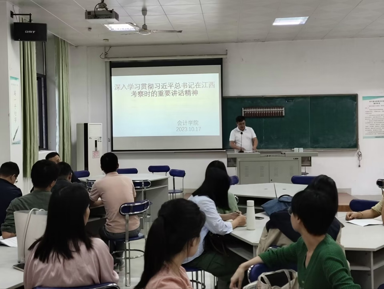 10月17日下午,公司在东区一楼实训室召开政治理论学习会,集中收听收看《新闻联播》,传达学习习近平总书记在江西考察时的重要讲话精神。会议由公司党总支副书记杨燕主持,全体教职工参加会议。