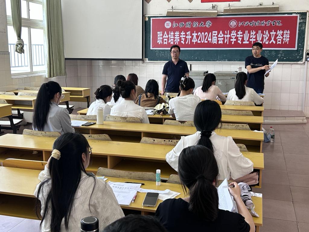公司深入贯彻江西财经大学《关于做好2024届本科生毕业论文(设计)工作的通知》等文件精神,认真落实论文选题、写作、查重、抽检等重要环节的前提下,严格答辩工作流程。本次毕业论文答辩分为4个小组进行,每组由江西财经大学教师担任答辩组长,对每位毕业生的论文进行现场考察。