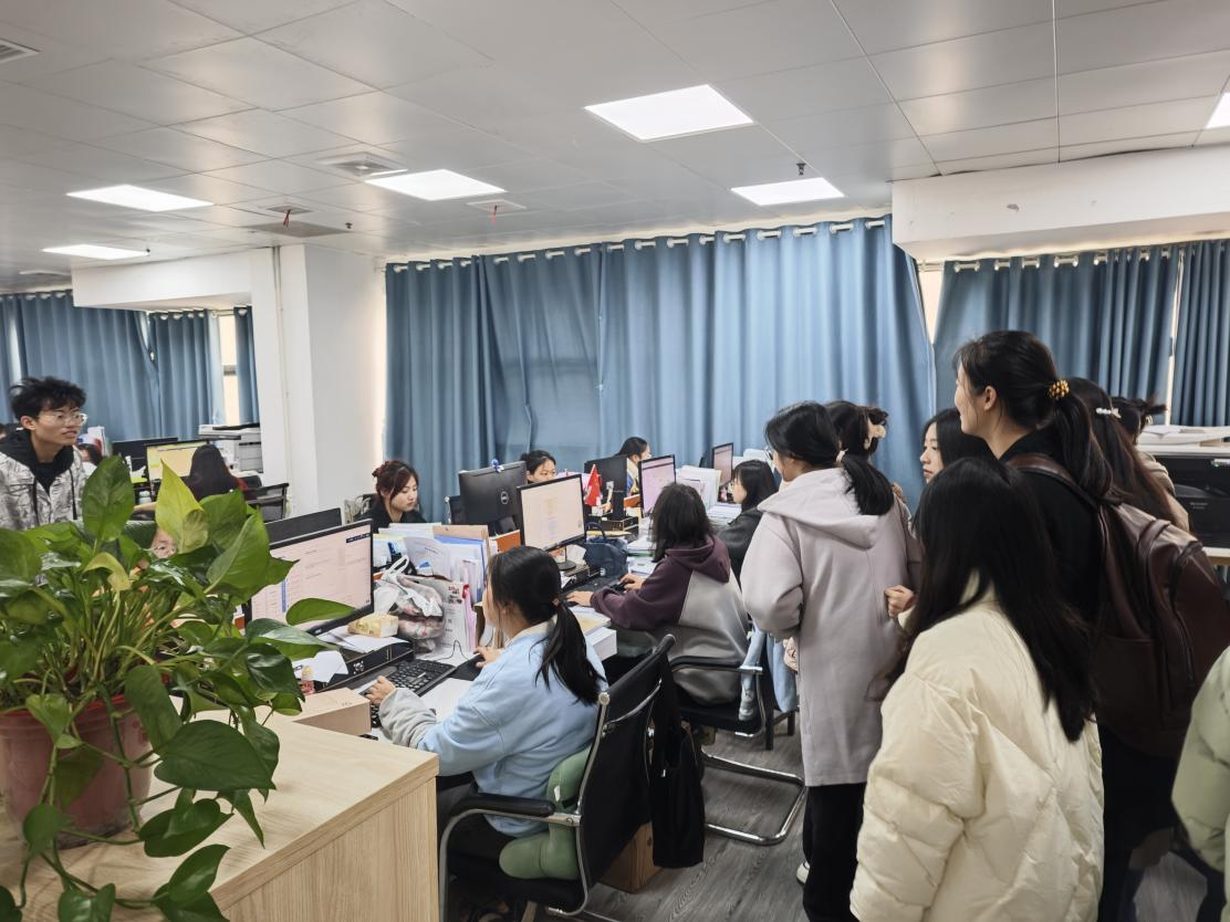 12月06日,公司为数字化社会财务共享现场工程师班级开展了一场别开生面的企业实践学习课程,在企业导师的带领下,现场工程师班级一行近30名员工赴九江老账人财务集团进行了企业实践学习交流活动。此次活动旨在让员工们深入了解财税机构人员结构体系,涉税业务开展流程,企业财税实务实操以及未来的财税行业态势。不仅是一次简单的参观学习,更是一次深入实践、探索财会世界的难得机会,为未来的职业生涯打下坚实基础。