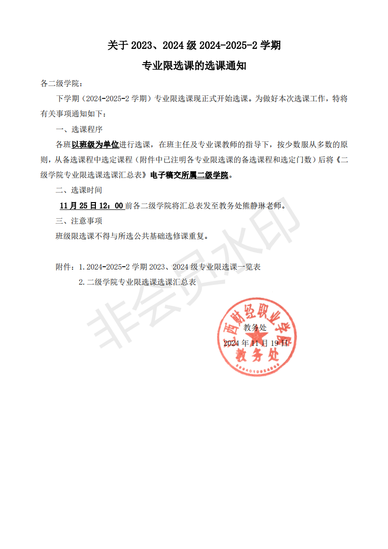 下学期(2024-2025-2 学期)专业限选课现正式开始选课。为做好本次选课工作,特将