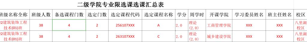 2.二级公司专业限选课选课汇总表