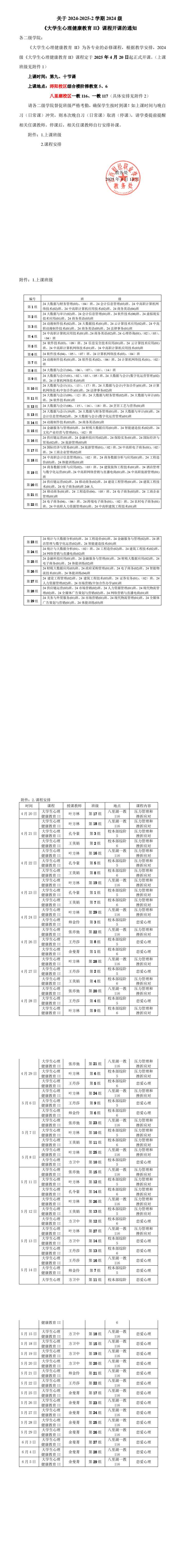 关于 2024-2025-2 学期 2024 级 《老员工心理健康教育 II》课程开课的通知