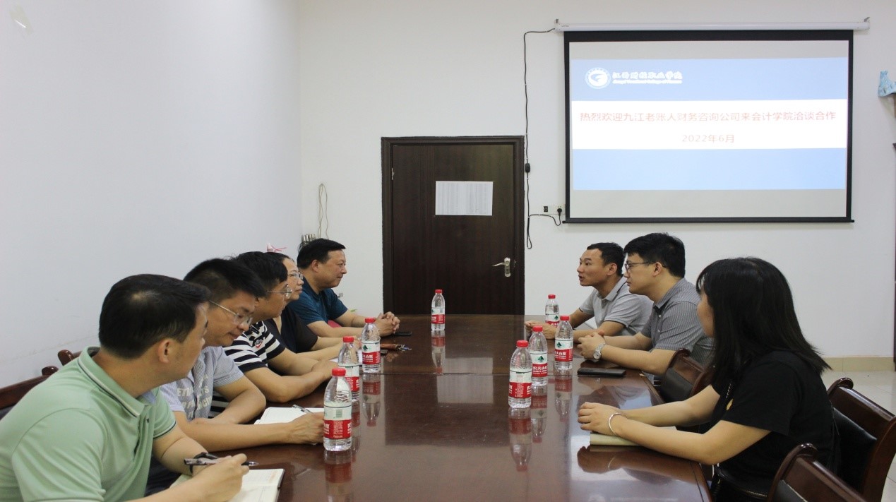 九江老账人财务咨询公司总经理刘勇向公司介绍了其公司发展情况、企业未来人才需求以及校企合作愿景等方面。该公司位于江西省九江市濂溪区,主要经营范围集中在代理记账;工商登记代理、知识产权代理;企业管理咨询、企业营销策划等方面。